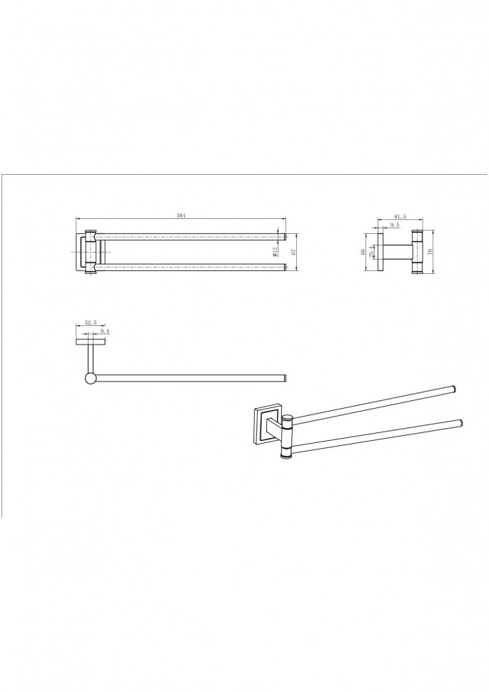 Полотенцедержатель двойной CeramaLux Gamma 12314 купить в Гродно, цена