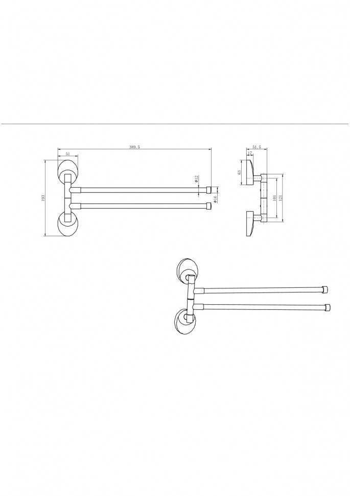 Полотенцедержатель поворотный CeramaLux Caps 73214-2 купить в Гродно, цена