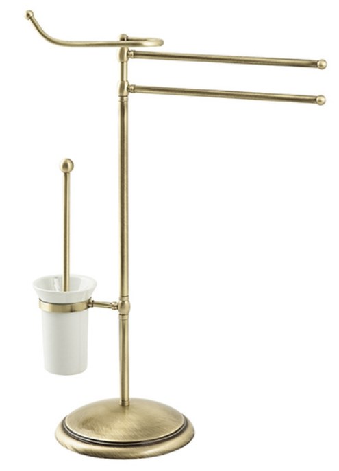 стойка напольная с держателем туалетной бумаги, ершиком и двумя поворотными штангами для полотенец (колба – керамика) (полная высота – 700 мм)