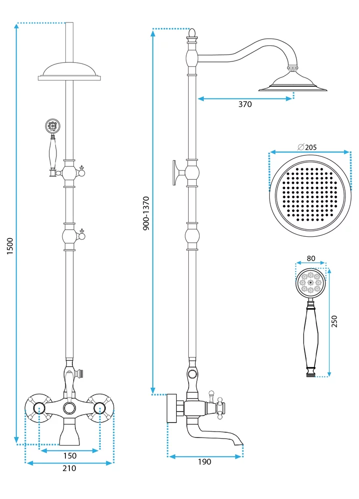 ручной душ, шланг 150 см |