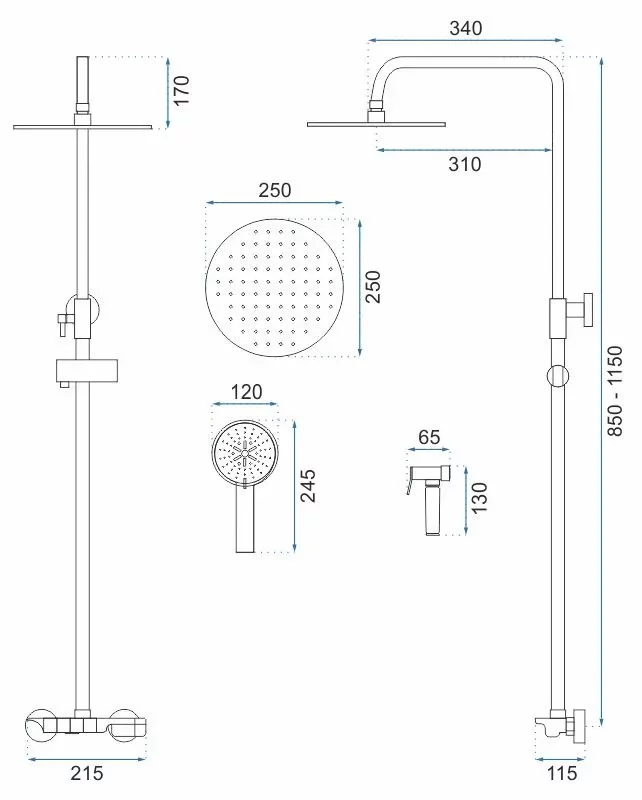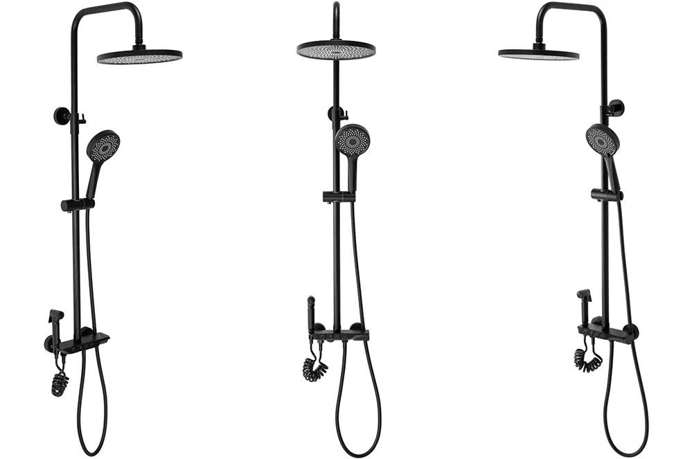 Эта душевая система может включать в себя различные режимы струи для персонализированного комфорта, удобный душевой гарнитур. Матовая черная отделка добавляет современный шарм и придает системе индивидуальность.