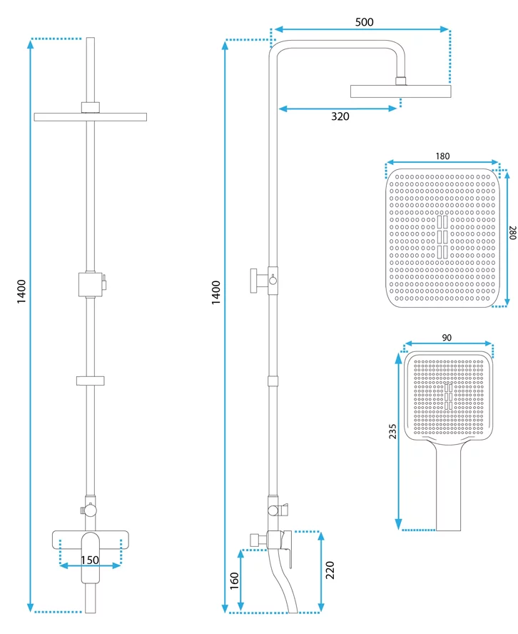 ручной душ, шланг 150 см |