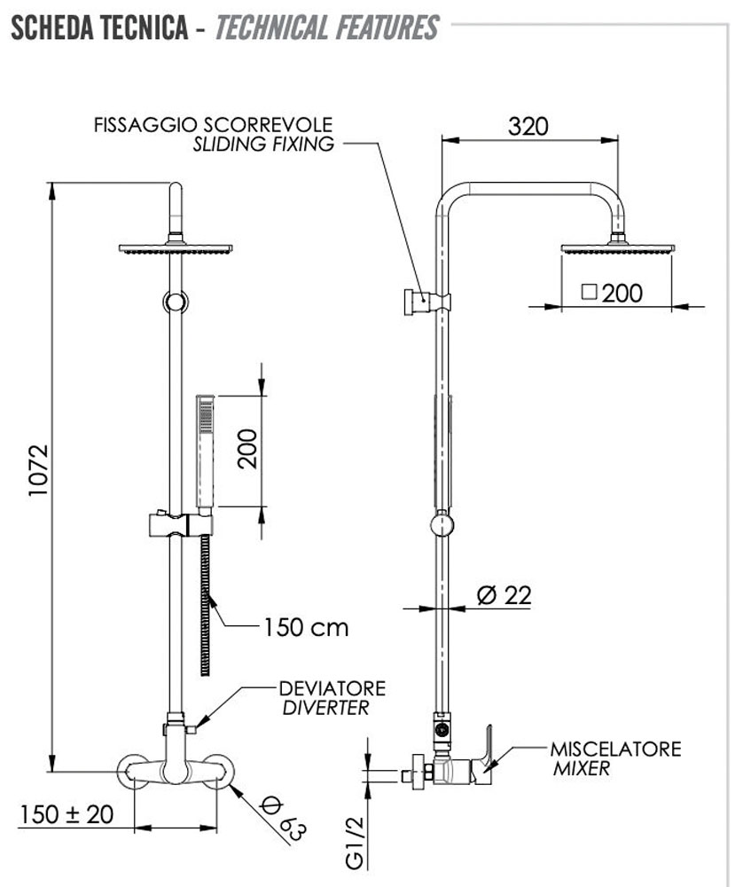 Душевая система Remer Energy EY37X7SS9SSBG, золото брашированное