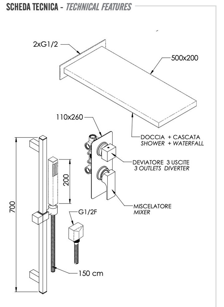 скрытая часть, ручной душ, шланг |
