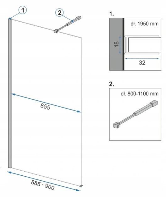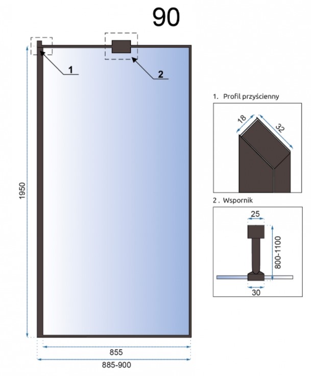 Душевая стенка Rea Aero Black 90x195 K7581 купить в Гродно, цена