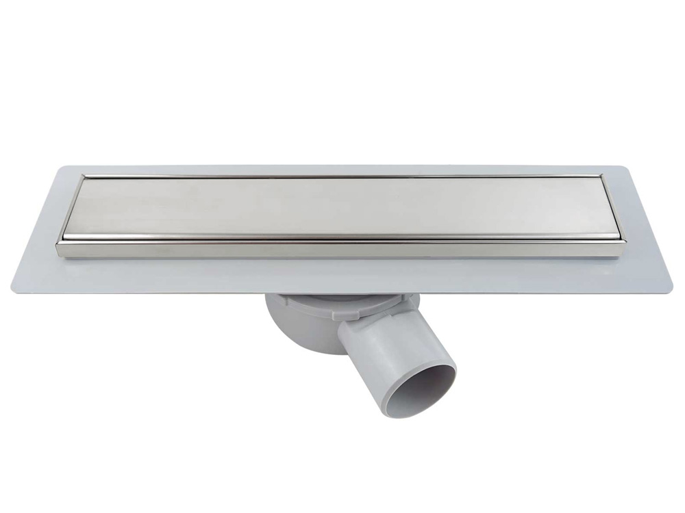 Поворотный сифон 360 градусов из ABS-пластика, дренажный канал из ABS-пластика, водонепроницаемые уплотнительные кольца, решетка и рамка из нержавеющей стали 1 мм, противозапаховый затвор, водонепроницаемая мембрана, пластиковый сервисный ключ, комплект регулируемых по высоте опор