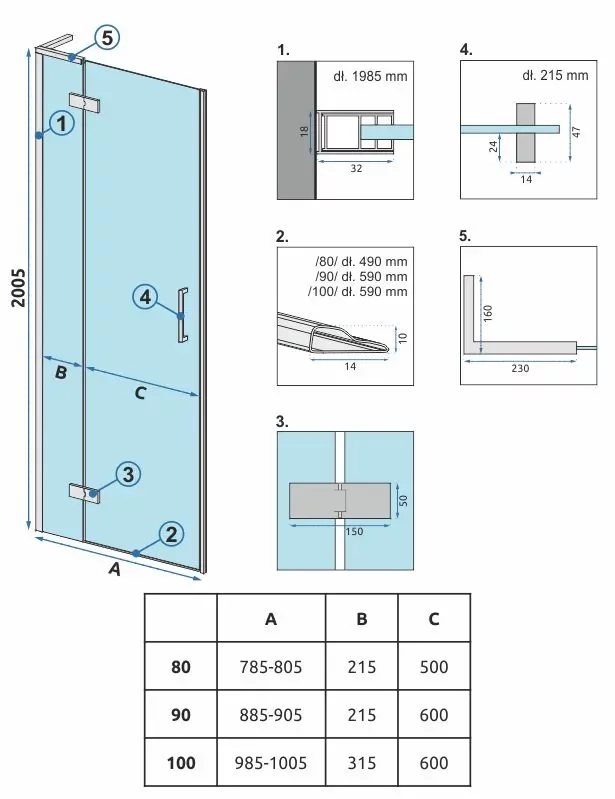 Душевая дверь Rea Hugo Gold brush 100 K8413 купить в Гродно, цена