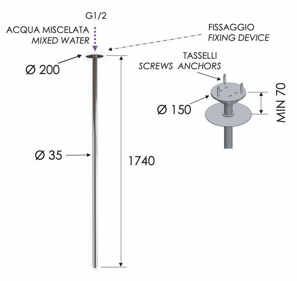 Излив потолочный 181 см Remer 91VLN2 купить в Гродно, цена