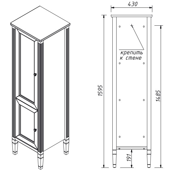 Шкаф-пенал с 2 дверьми, правое открывание, выпускается под заказ в отделках Эмалями из Реестра CLASSIC . внутри 3 полки