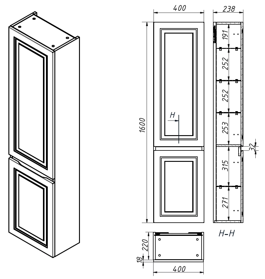 Пенал подвесной Caprigo Wales 40 36050R-SF024 купить в Гродно, цена