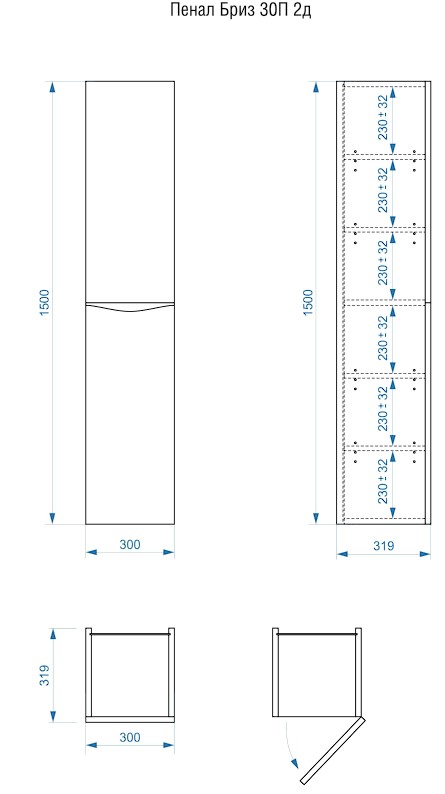 Пенал Vela Бриз 30П — практичное и стильное решение для небольших пространств. Подвесной дизайн освобождает пол, а дверцы обеспечивают удобный доступ к содержимому.