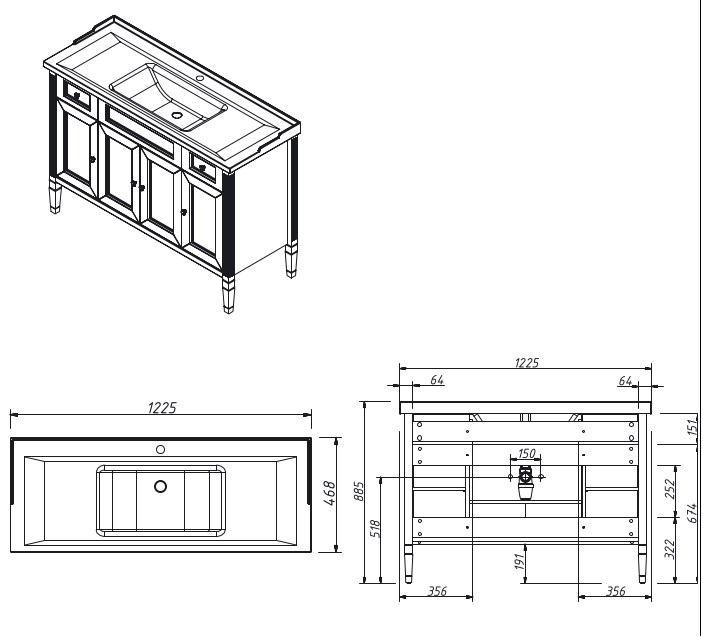 Тумба напольная Caprigo Albion Concept 120 34016-SF024 купить в Гродно, цена