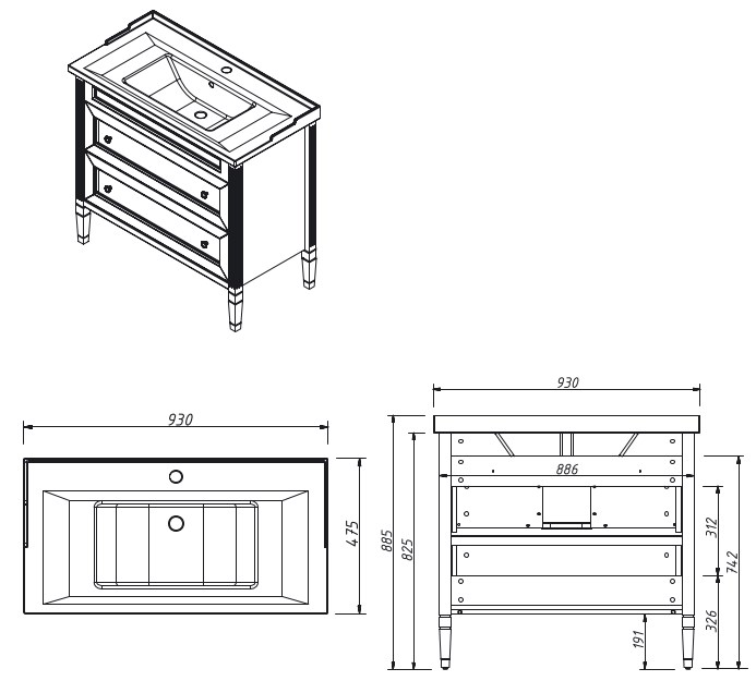 Тумба напольная Caprigo Albion Concept 90 34018-SF013 купить в Гродно, цена