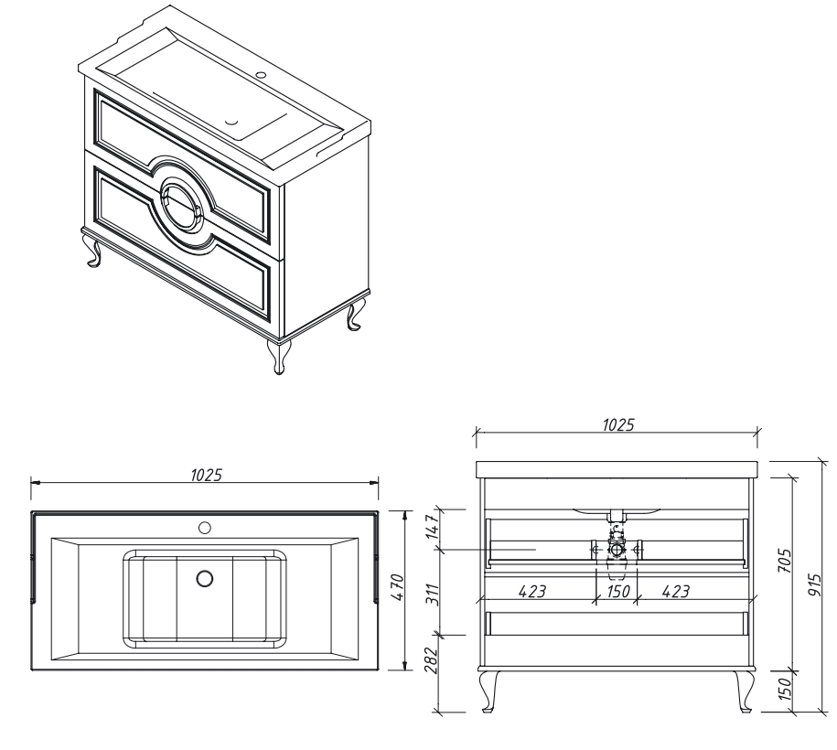Тумба напольная Caprigo Valletta 90 35318UV-SF019