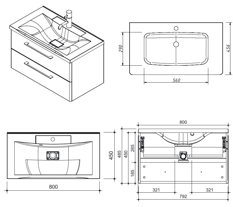 Тумба подвесная для раковины 80см с 2 ящиками, производится под заказ в любых отделках из реестра"MODERN"