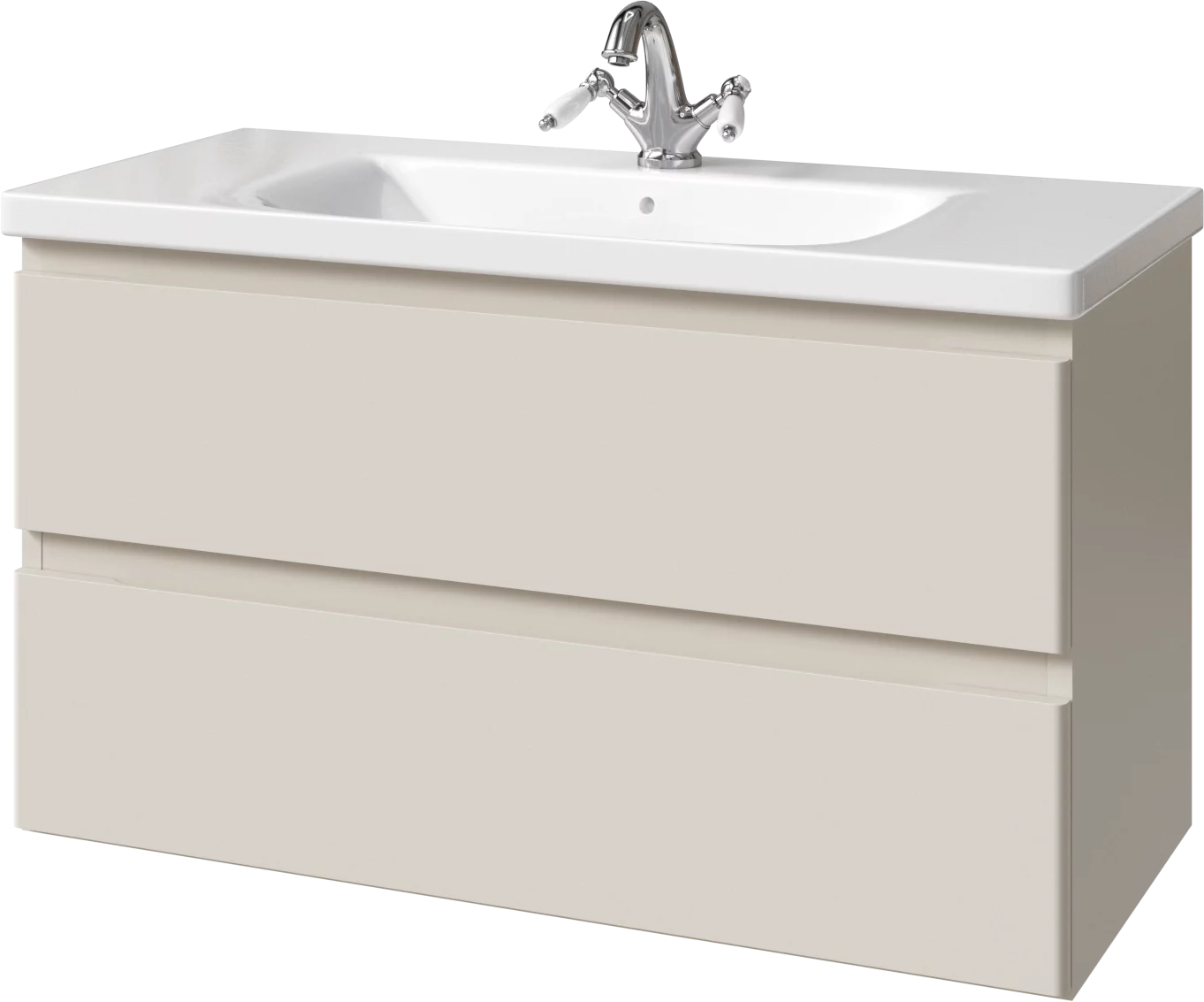 Тумба подвесная для раковины 100 см с 2 ящиками. Ручки интегрированные в фасадах. Выпускается в Матовых и Текстурированных отделках из реестра MODERN (ограничение по глянцевым отделкам).