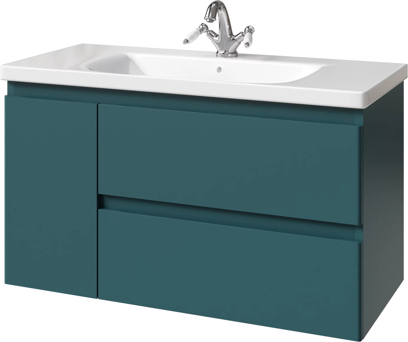 Тумба подвесная для раковины 100см с 2 ящиками и 1 дверью (слева). Ручки интегрированные в фасадах. Выпускается в Матовых и Текстурированных отделках из реестра MODERN (ограничение по глянцевым отделкам).