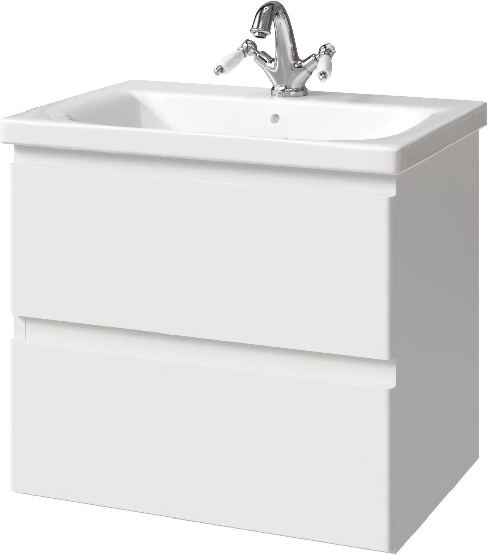 Тумба подвесная для раковины 65 см с 2 ящиками. Ручки интегрированные в фасадах. Выпускается в Матовых и Текстурированных отделках из реестра MODERN (ограничение по глянцевым отделкам).