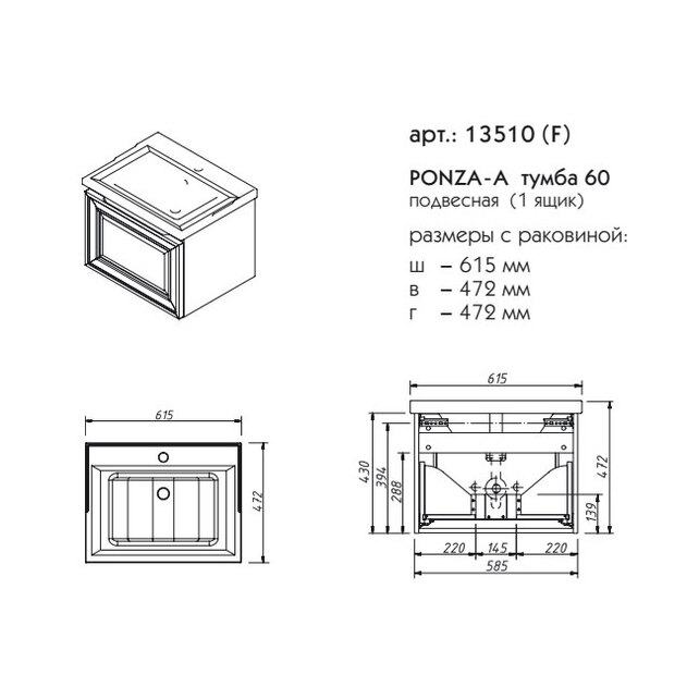 Тумба подвесная Caprigo Ponza 60 13510-B231 купить в Гродно, цена
