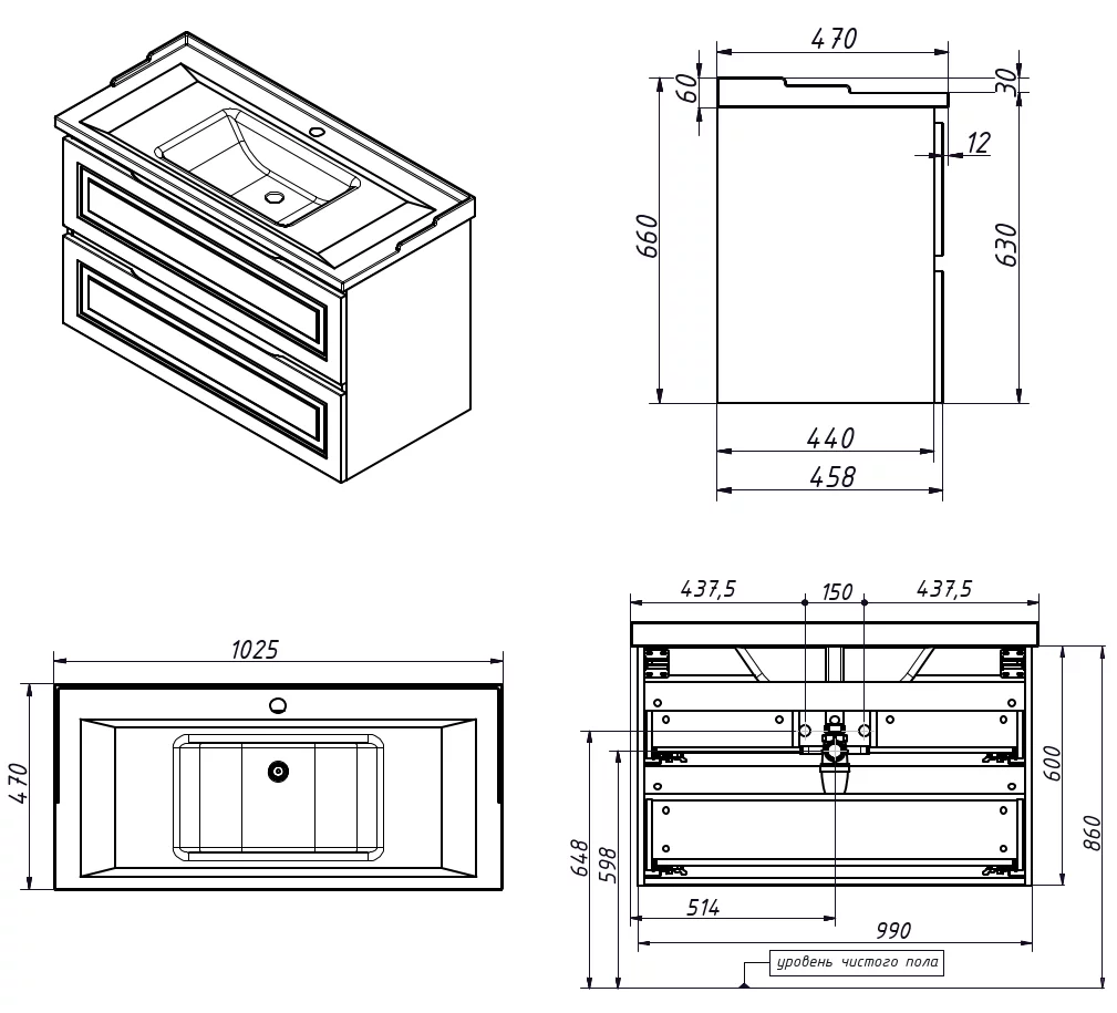 Тумба подвесная Caprigo Wales 100 36014-SF025 купить в Гродно, цена