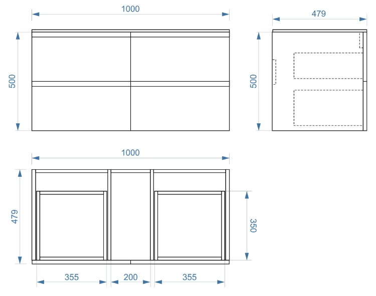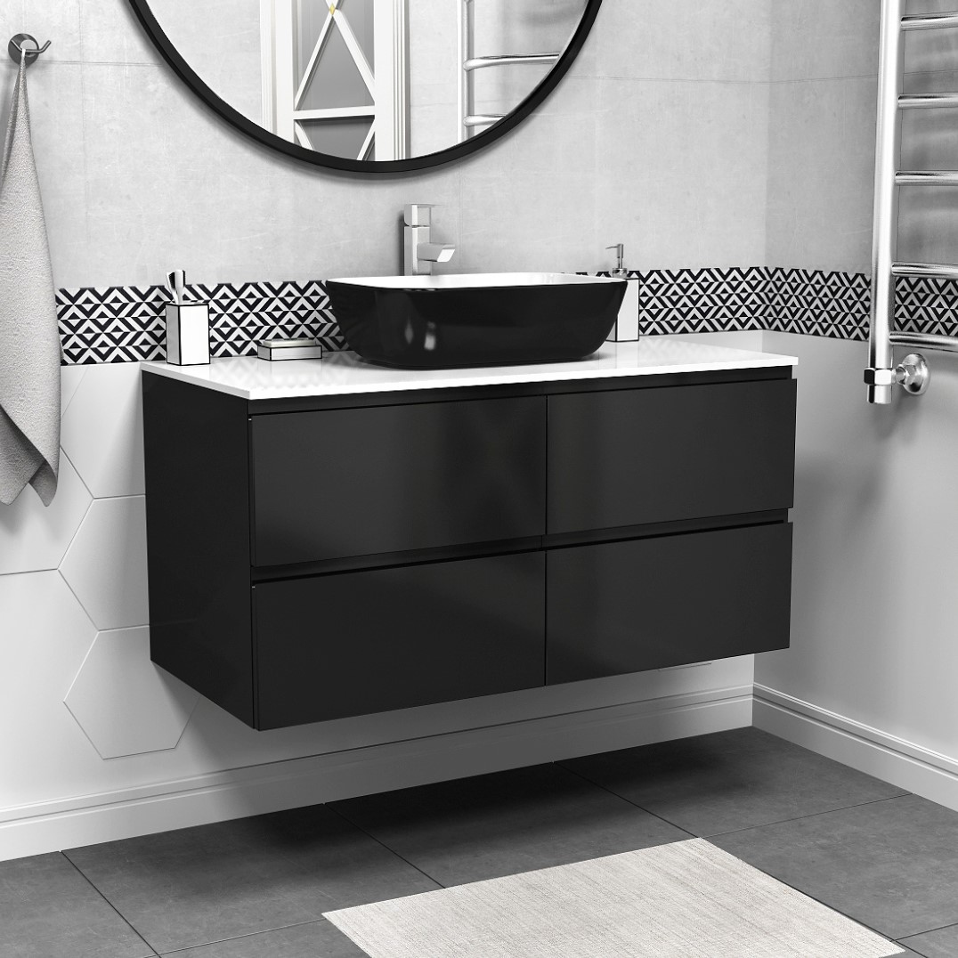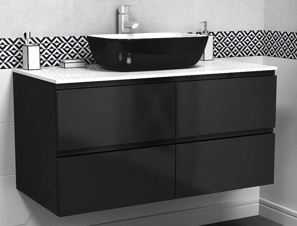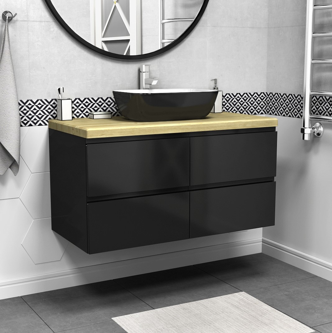Тумба подвесная Vela Мира 100П 4 ящика (черный матовый) TU37109 купить в Гродно, цена