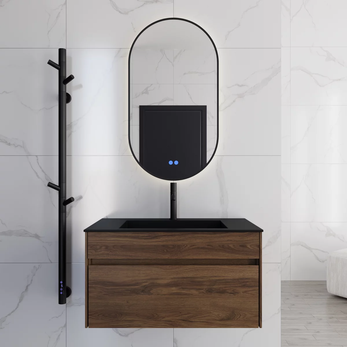 Мебель может быть укомплектована на выбор белой, чёрной или серой раковиной