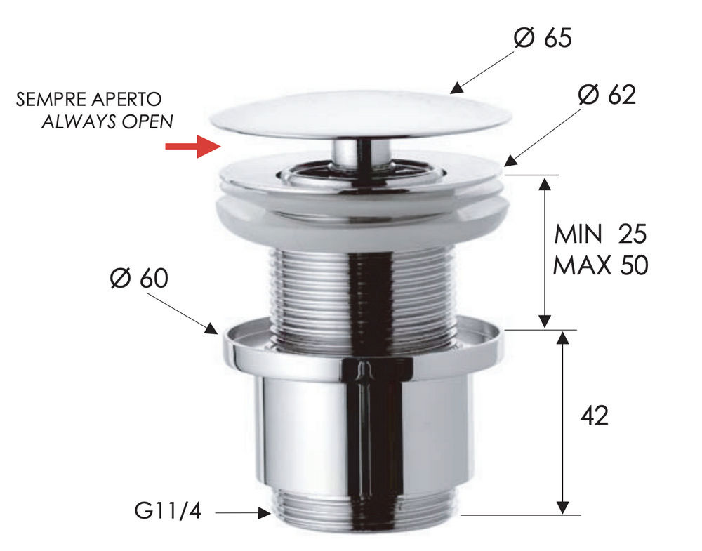 Донный клапан незапираемый без перелива 1”1/4 Remer 9072 купить в Гродно, цена