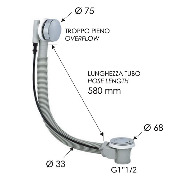 Слив-перелив полуавтоматический для ванны Remer 96PDO, золото глянцевое