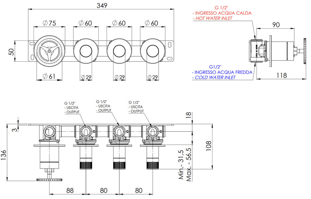 Смеситель для душа Remer Chrono CH98D3PBG, золото брашированное купить в Гродно, цена