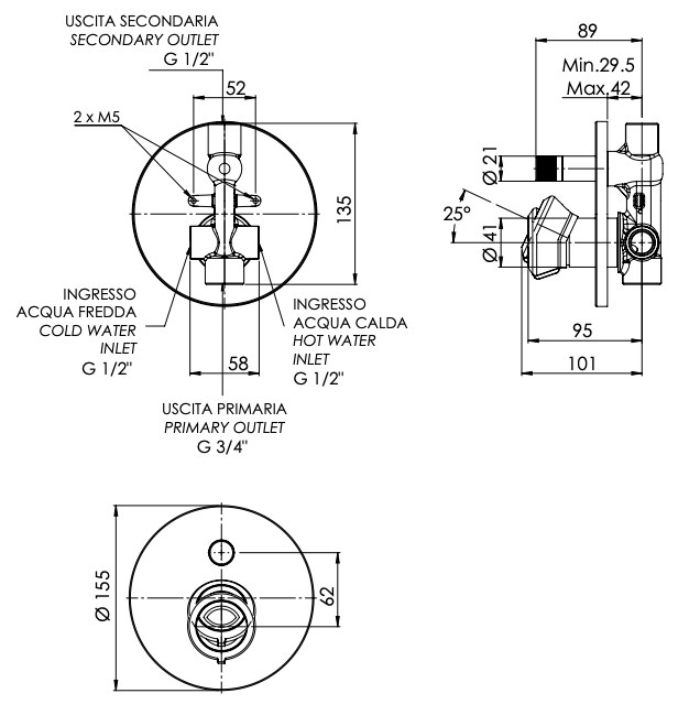 Смеситель для душа Remer Element ET09HNO, черный матовый