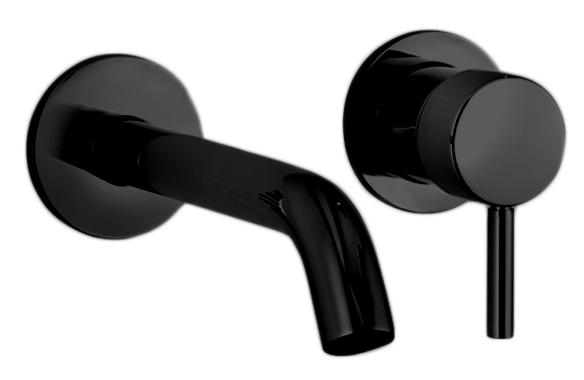 5013E811B NOSTROMO Смеситель из стены для раковины вылет 20 см Ручка цилиндрической формы с рычагом С розетками ограничитель потока воды до 5 л/мин при 3 бар впуски 1/2'' БЕЗ ДОННОГО КЛАПАНА Наружная часть Черный матовый