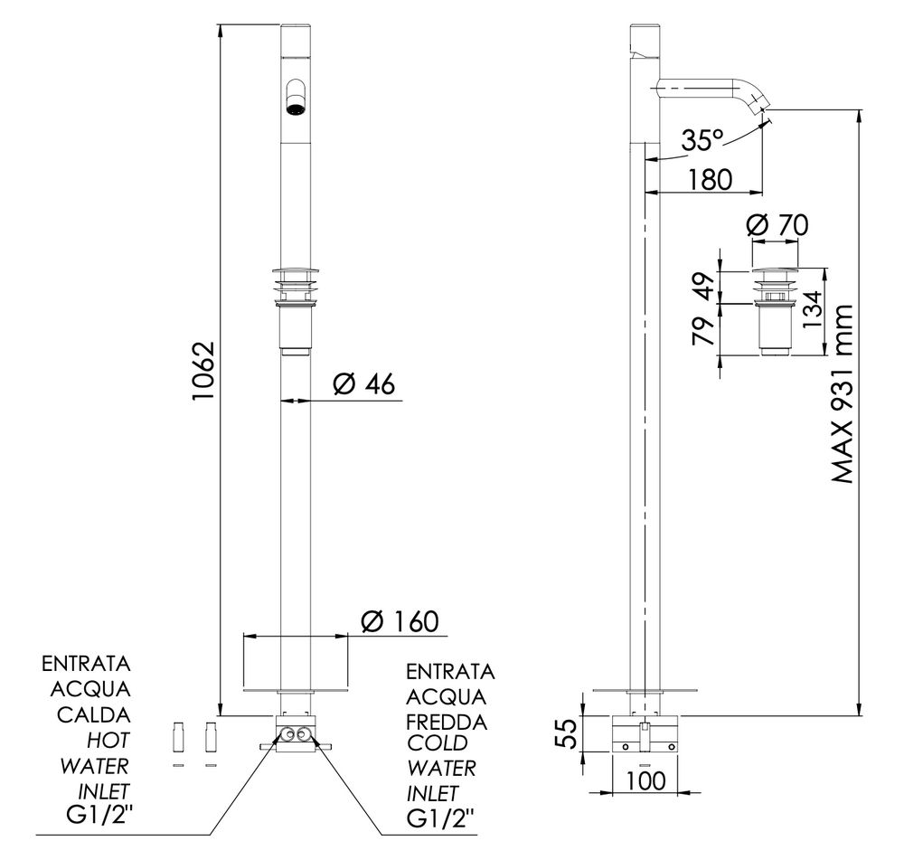 скрытая часть, донный клапан |