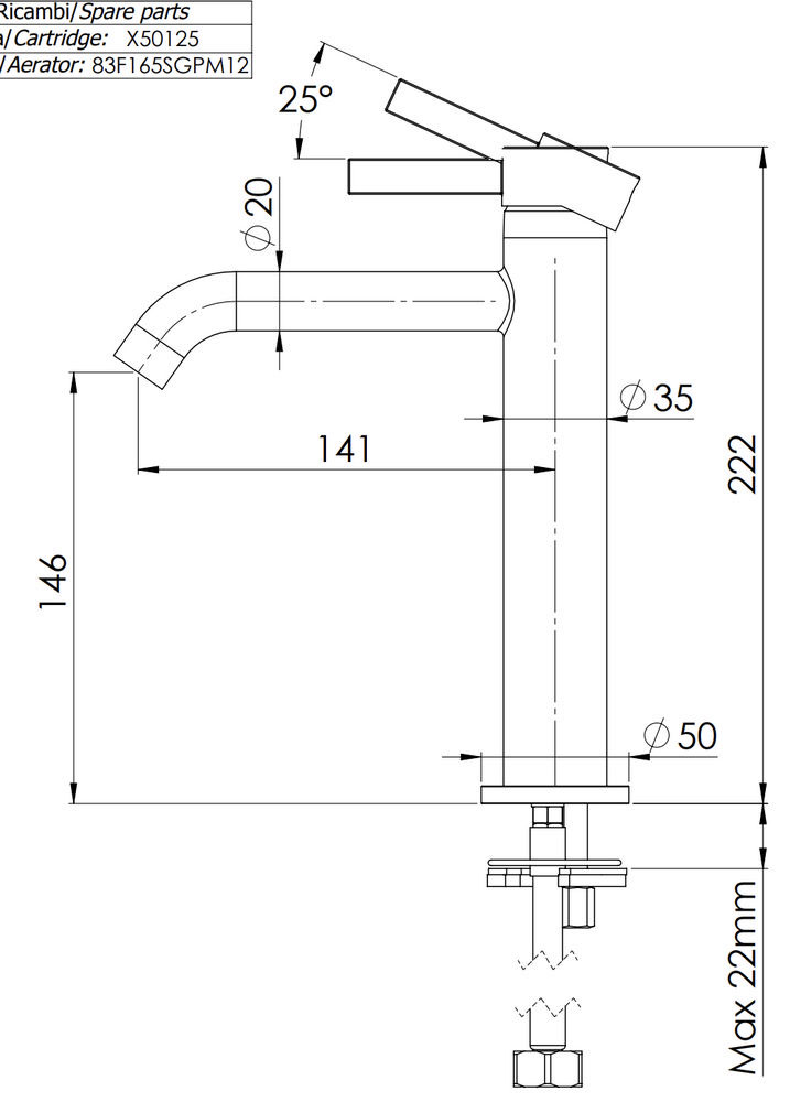 Смеситель для раковины Remer Metrica MC12A