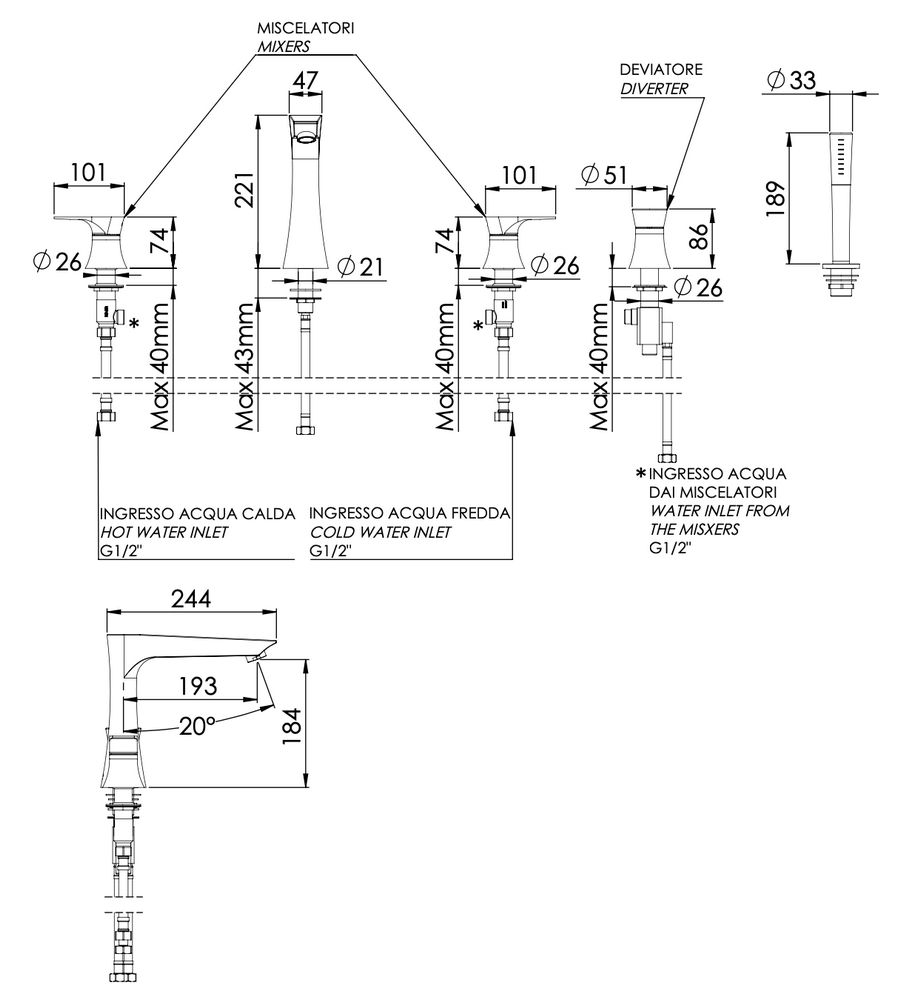 Смеситель для ванны Daniel Diva DV4491CR купить в Гродно, цена