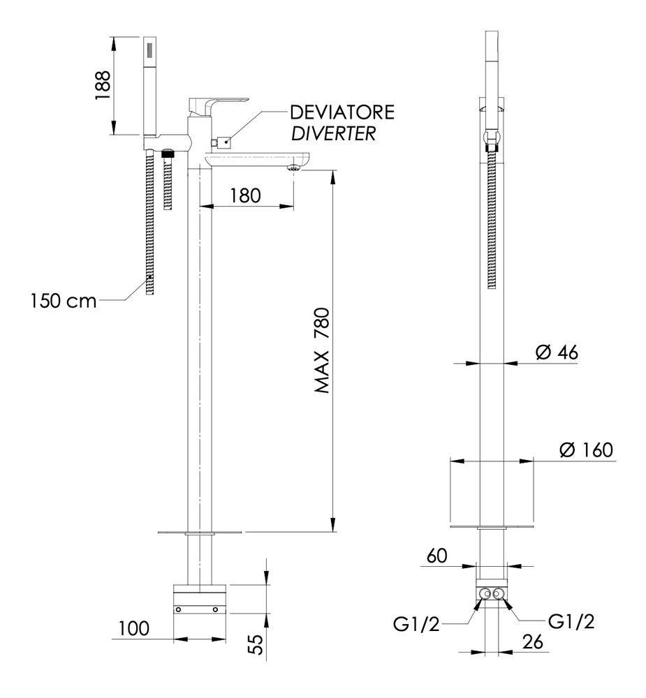 скрытая часть, лейка, шланг |
