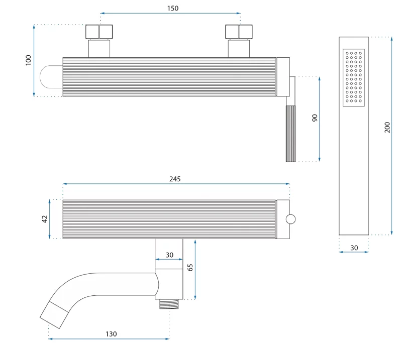 ручной душ, шланг, держатель для лейки |