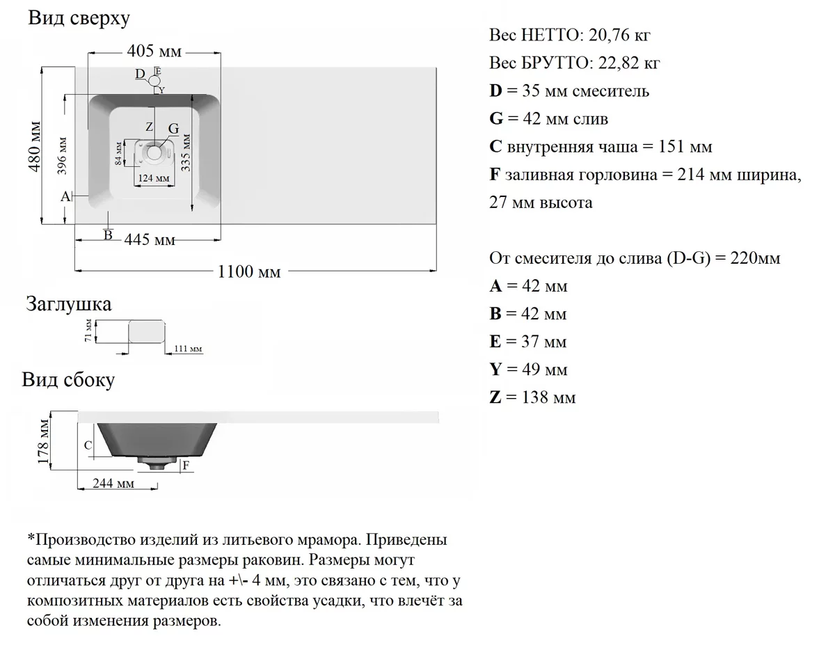 Умывальник Madera Kamilla 110 L купить в Гродно, цена