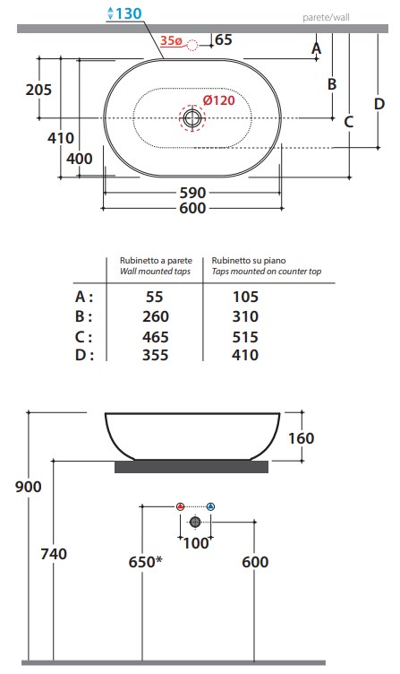 Умывальник Globo T-edge B6O60BI купить в Гродно, цена