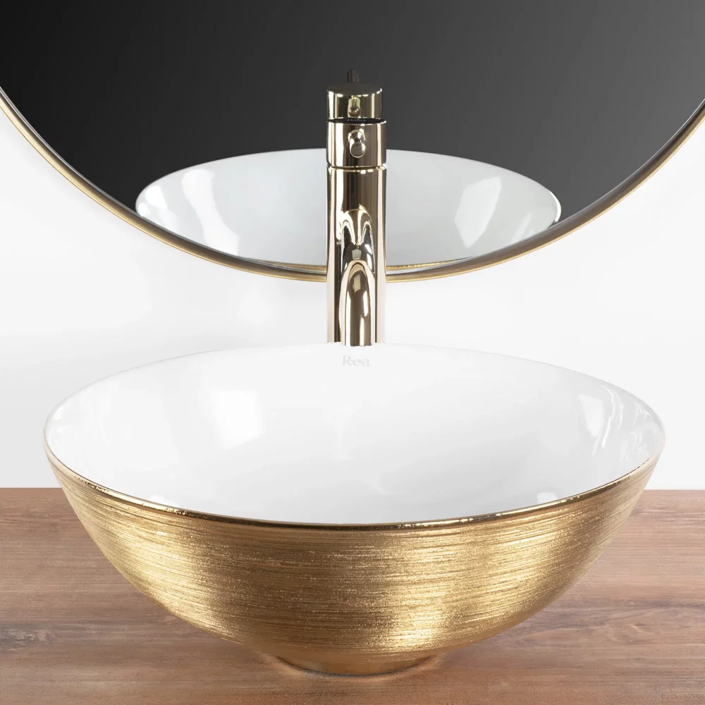 Умывальник Rea Stella gold brush white U9087 купить в Гродно, цена