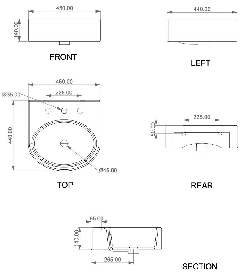 Умывальник GSG Ceramic Design Like LKLAVBW45003