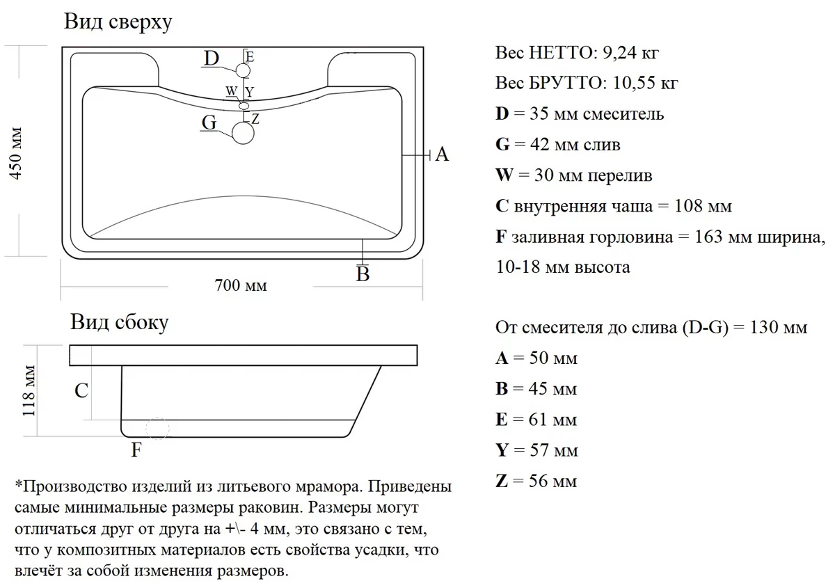 Диаметр сливного отверстия, мм