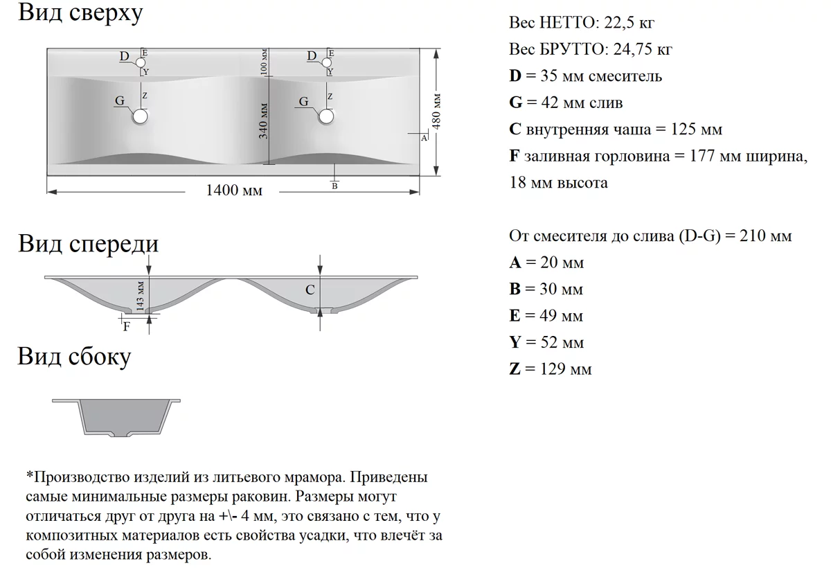 Умывальник Madera Pulsus 140 купить в Гродно, цена