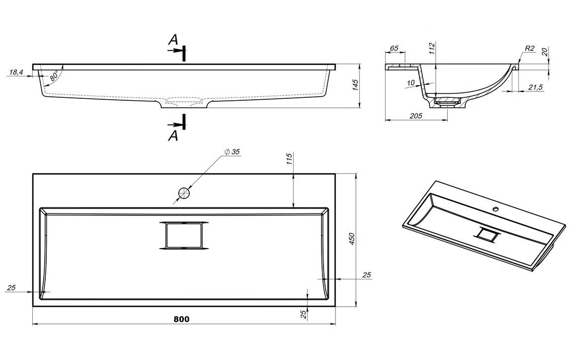 Умывальник Versalia Absolute 80 купить в Гродно, цена