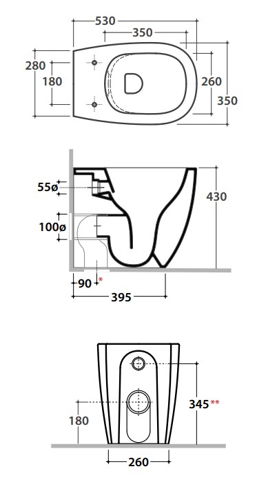 Унитаз приставной Globo Daily DN001BI