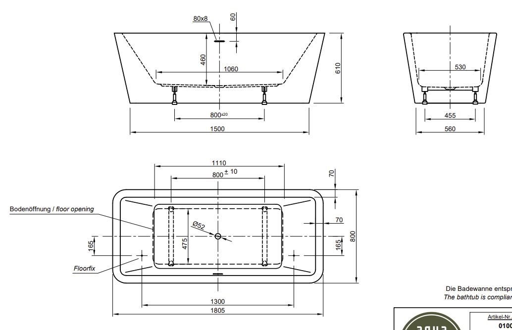 Ванна акриловая Knief Mood 0100-285 купить в Гродно, цена