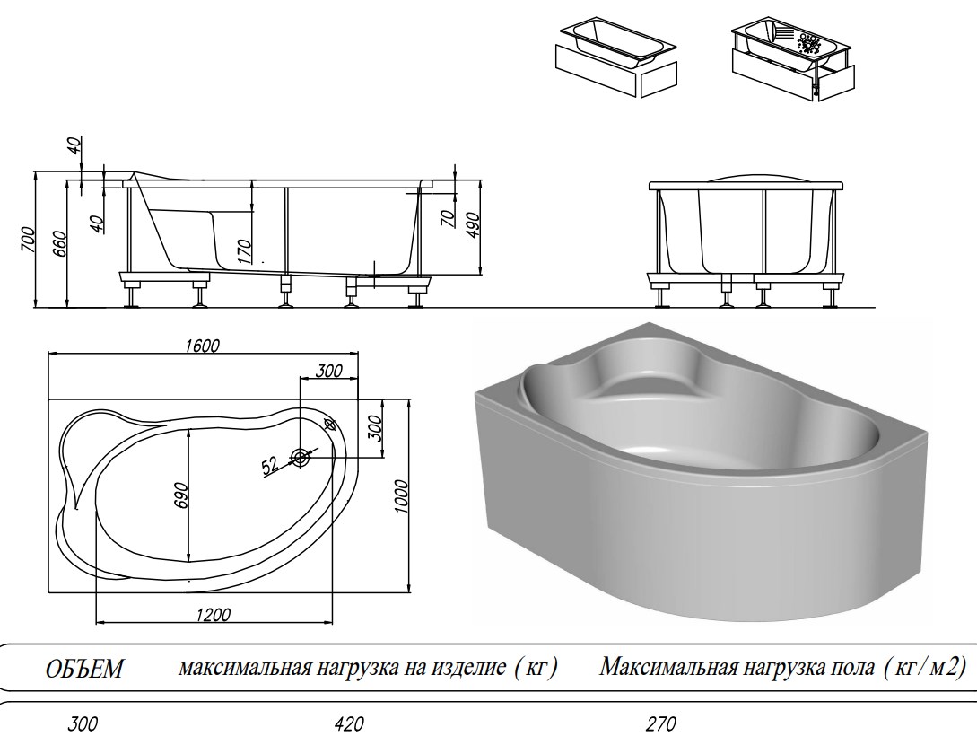 Ванна акриловая Kolpa-San Amadis 160x100-R купить в Гродно, цена
