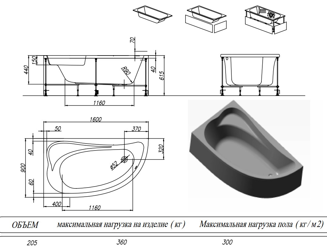 Ванна акриловая Kolpa-San Calando 160x90 D купить в Гродно, цена