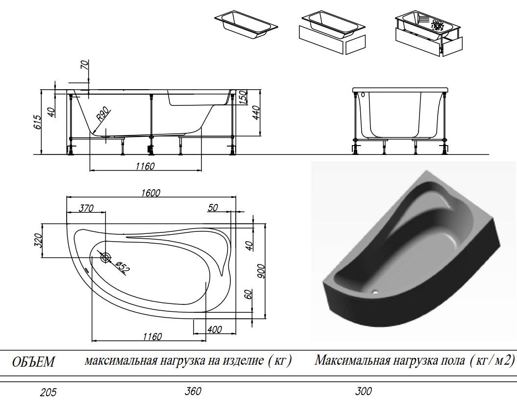 Ванна акриловая Kolpa-San Calando 160x90 L купить в Гродно, цена