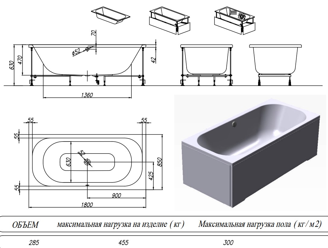 Ванна изготовлена из высококачественного акрила Lucite с толщиной листа не менее 4 мм, имеет безупречный внешний вид и долгий срок службы.