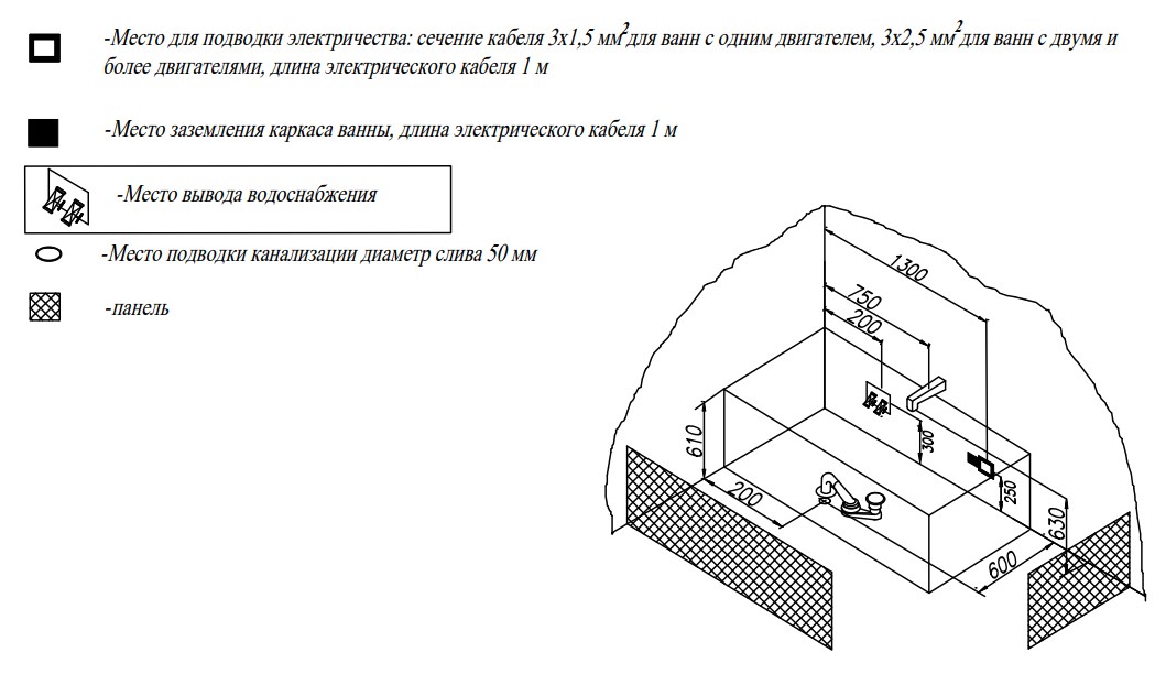 Ванна изготовлена из высококачественного акрила Lucite с толщиной листа не менее 4 мм, имеет безупречный внешний вид и долгий срок службы.